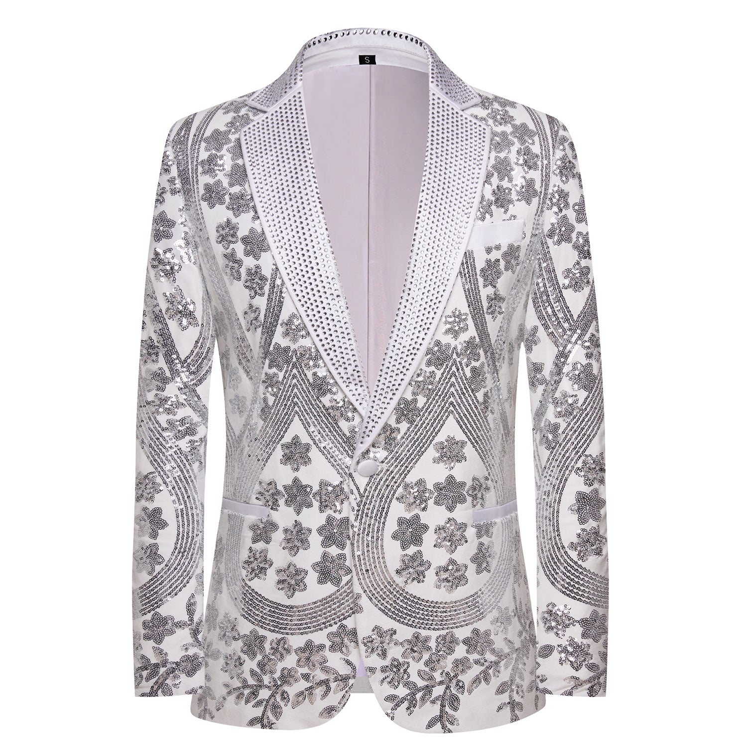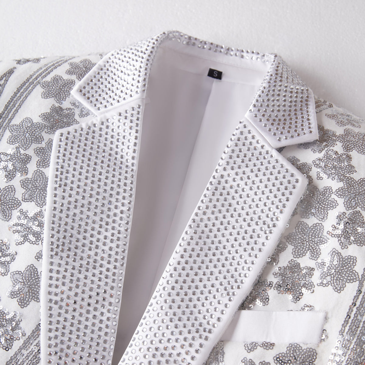 White Sparkling Sequin Men Blazer S8661