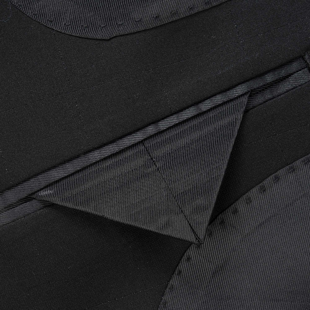 Impeccably tailored with razor-sharp lapels and a deep ebony finish that commands any room. This three-piece ensemble features a subtle linear texture that catches the light, projecting an image of uncompromising authority and sophisticated focus.